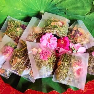 *Thành phần: 100% thảo mộc từ thiên nhiên như lá sen, hoa sen, hoa hồng, hoa nhài, …
